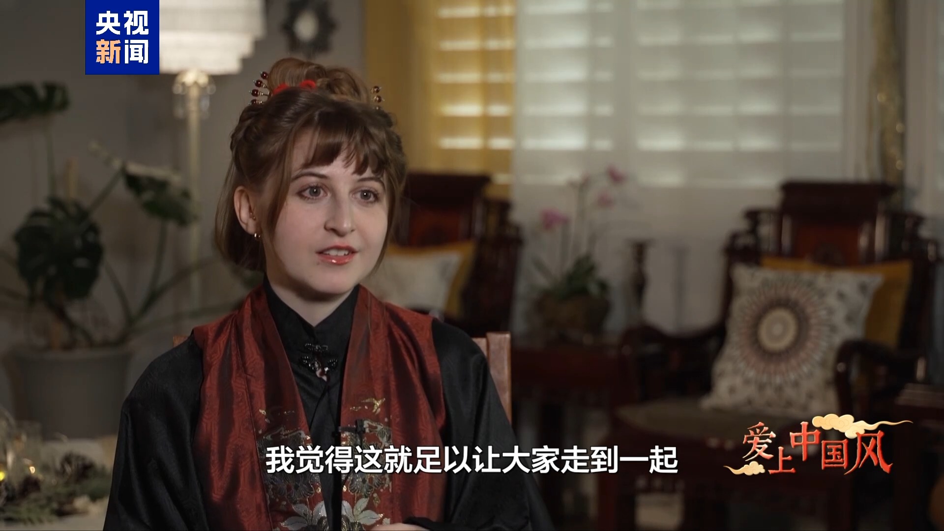 瑞秋:我在瀏覽網(wǎng)站的時候,我非常喜歡瀏覽時尚視頻,當時看到了一個關(guān)于中國漢服的視頻,我當時想這是什么?他們說,這是漢服的復(fù)興,年輕人正在把它帶回來。我覺得這太酷了。