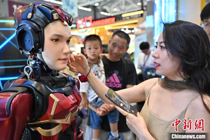圖為人形機(jī)器人“夏瀾”吸引參觀者?!£愺K旻 攝