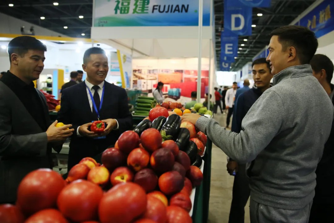 當?shù)貢r間2024年8月23日,第十九屆哈薩克斯坦—中國商品展覽會在哈薩克斯坦首都阿斯塔納世博園國際展覽中心開幕。圖為來自中國的精品果蔬吸引不少觀眾前來問詢。 中新社記者 單璐 攝