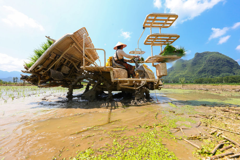 重慶市巫山縣廟宇鎮(zhèn)進(jìn)行機(jī)械化插秧。受訪者供圖