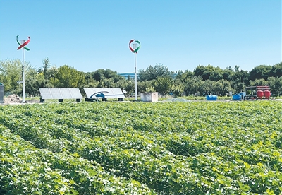 “在示范區(qū),來自中國的光伏板、智能水肥一體機與滴灌系統(tǒng)配合,可以根據(jù)作物需要自動施肥,相比人工施肥,養(yǎng)分供應(yīng)更及時和高效。項目實施兩年來,該節(jié)水農(nóng)業(yè)示范區(qū)棉田的籽棉平均畝產(chǎn)量達(dá)到307公斤,遠(yuǎn)高于當(dāng)?shù)?20公斤的平均畝產(chǎn)量,且用水量僅約為當(dāng)?shù)氐?0%,滴灌和施肥所需能源也主要來自于光伏發(fā)電。”王平接受本報記者采訪時介紹,“這項合作不僅為烏方科研技術(shù)人員提供了技術(shù)交流實踐的基地,也讓當(dāng)?shù)孛癖娍吹禁}堿地生態(tài)治理和經(jīng)濟效益協(xié)同的可能性”。