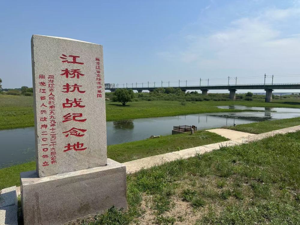 嫩水江畔,斑駁的石碑肅立,湍急的江水沖刷著堤岸,老江橋僅存的橋墩遺址已淹沒在水下,無聲訴說著九十多年前的硝煙與過往。