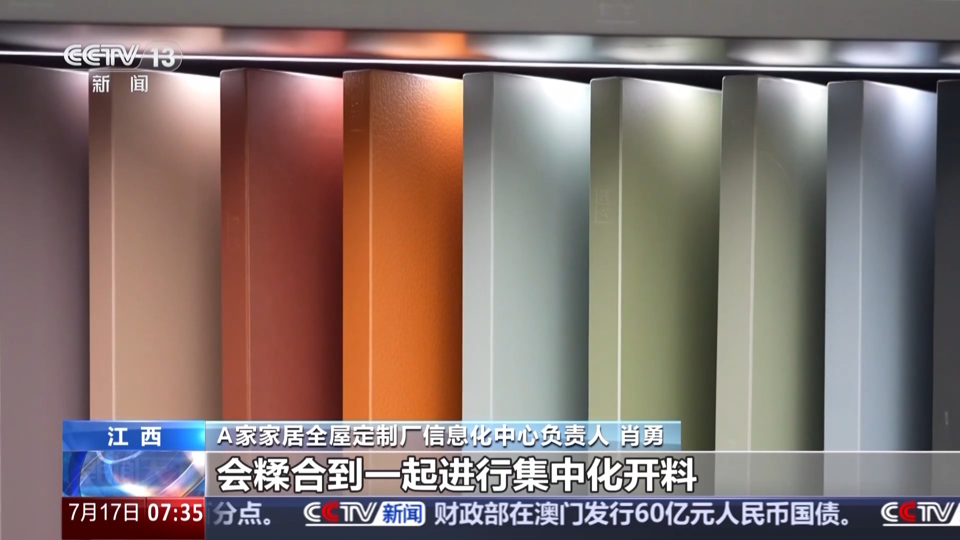如此高效的個性化定制得益于企業(yè)的智能化生產(chǎn)系統(tǒng)??蛻舻脑O(shè)計方案被迅速轉(zhuǎn)化為數(shù)據(jù)發(fā)送至工廠。與傳統(tǒng)“一單一做”不同,這家工廠通過智能算法,將多個訂單中顏色、規(guī)格相近的板材按需求集中優(yōu)化開料。