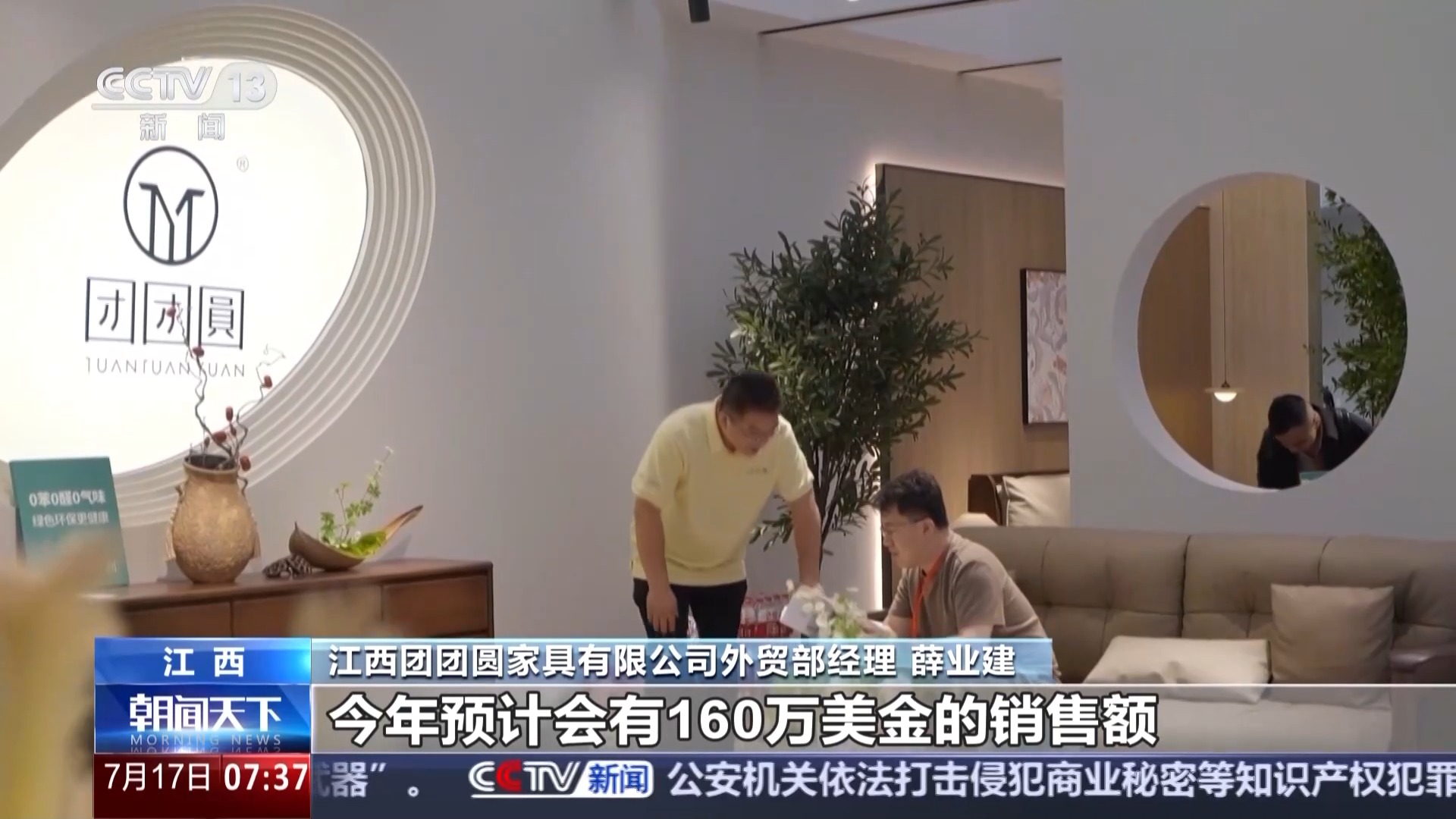 江西團團圓家具有限公司外貿(mào)部經(jīng)理 薛業(yè)建:家具在7月到11月是一個銷售旺季,今年預(yù)計會有160萬美元的銷售額。