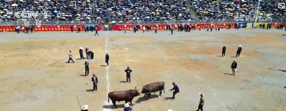在位于四川涼山的普格縣,傳統(tǒng)點(diǎn)火儀式拉開了當(dāng)?shù)叵盗谢顒?dòng)的序幕,傳統(tǒng)歌舞千人朵洛荷驚艷四方。身著五彩彝繡盛裝的姑娘們手持黃傘,隨悠揚(yáng)旋律翩躚起舞。斗牛比賽在普格縣火把廣場(chǎng)上演巔峰對(duì)決,強(qiáng)壯的公牛的每一次抵角、閃躲都引得現(xiàn)場(chǎng)一片歡呼。
