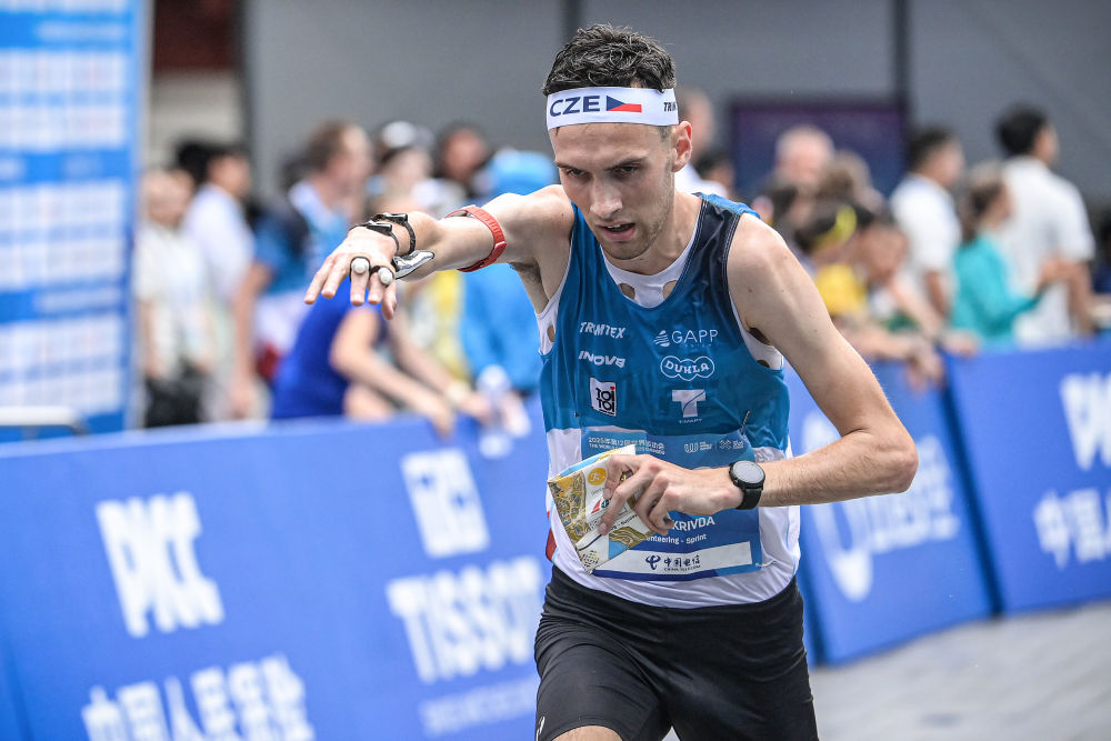 8月10日,捷克選手克日夫達(dá)在2025年成都世運(yùn)會(huì)定向男子短距離決賽中。