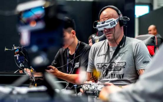 選手通過(guò)頭戴式顯示器第一視角操控?zé)o人機(jī)