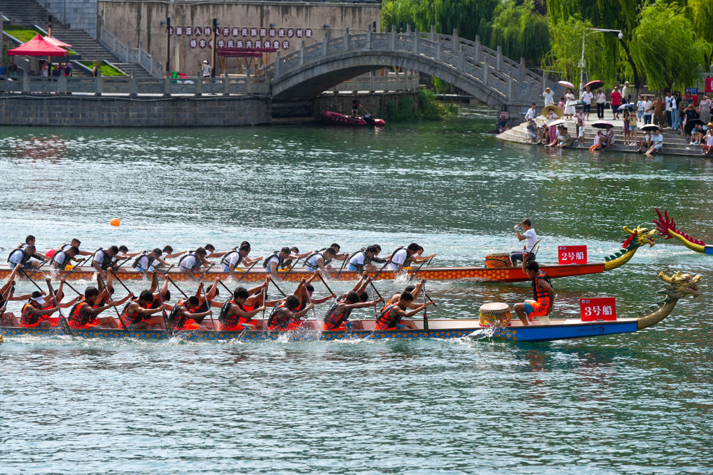 7月19日,龍舟隊(duì)伍在鎮(zhèn)遠(yuǎn)縣?陽河上比賽。新華社發(fā)(龍建睿攝)
