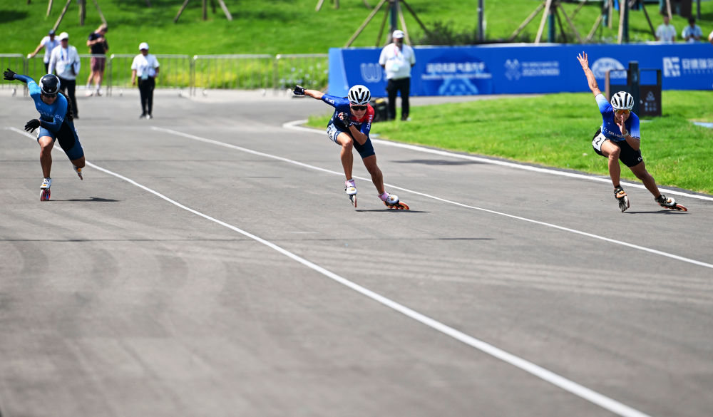 8月13日,2025年成都世運(yùn)會(huì)速度輪滑公路賽(100米爭(zhēng)先)女子決賽在成都舒悅公園舉行。新華社記者 謝劍飛 攝