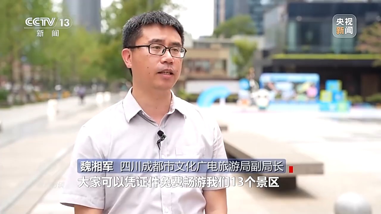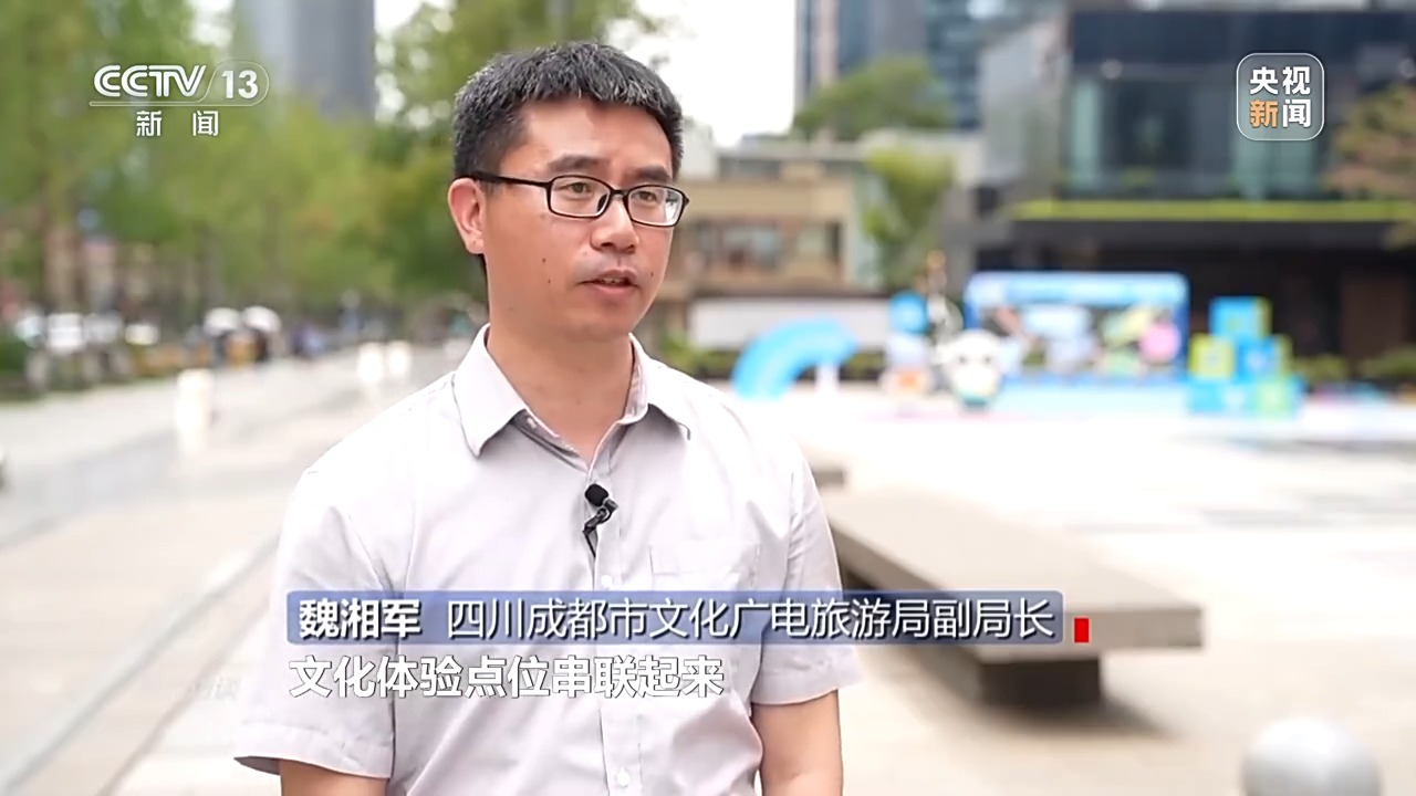 四川成都市文化廣電旅游局副局長 魏湘軍:我們精心設(shè)置了7條主題線路,把成都17個最具代表性的文化體驗點位串聯(lián)起來。這幾天,我們也看到很多國內(nèi)外游客朋友和運動員在熊貓基地、武侯祠、寬窄巷子、青城山、都江堰等體驗成都的文化,沉浸式感受這座公園城市、幸福成都。