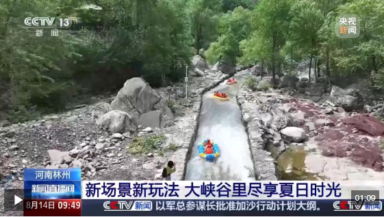 在河南林州太行大峽谷,旅游業(yè)態(tài)持續(xù)“上新”,這是升級后的峽谷漂流,沿途中增加了“水炮”“喊麥”等環(huán)節(jié),增強(qiáng)了游客的互動感。