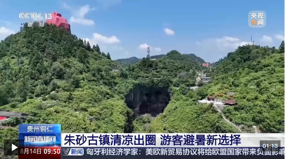 貴州銅仁萬山區(qū)朱砂古鎮(zhèn)憑借清涼宜人的環(huán)境,以及別具特色的景點(diǎn),吸引了不少游客前來避暑。