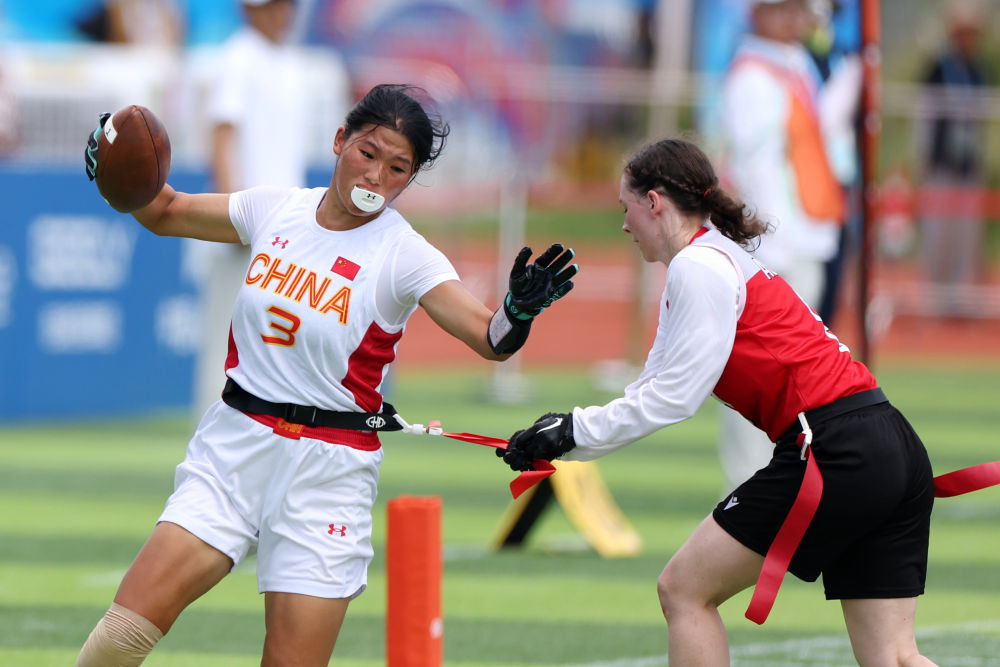 成都世運會女子腰旗橄欖球比賽首日,中國隊上演正式比賽首秀。這支組隊集訓僅3個多月的“神秘之師”,在首場迎戰(zhàn)世界排名第四的奧地利隊的比賽中,只以2分惜敗。