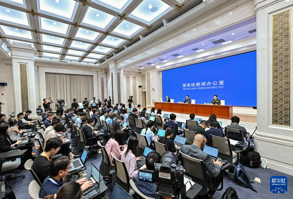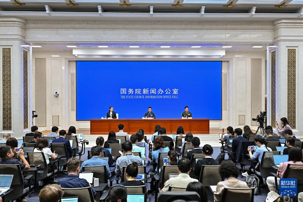 8月20日,國務(wù)院新聞辦公室在北京舉行新聞發(fā)布會(huì),閱兵領(lǐng)導(dǎo)小組辦公室副主任、中央軍委聯(lián)合參謀部作戰(zhàn)局少將副局長吳澤棵,中國人民解放軍中部戰(zhàn)區(qū)閱兵指揮機(jī)構(gòu)辦公室常務(wù)副主任、政治工作部少將副主任徐貴忠介紹閱兵準(zhǔn)備工作有關(guān)情況,并答記者問。新華社記者 李鑫 攝