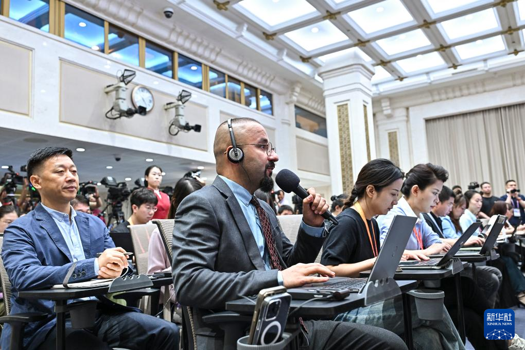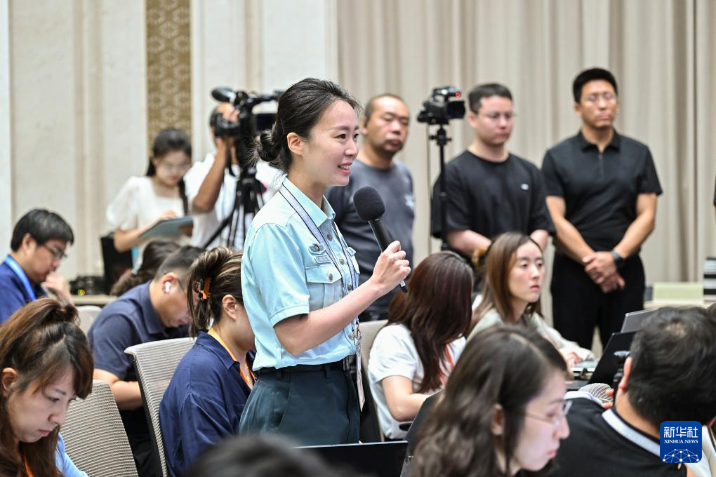 8月20日,國務(wù)院新聞辦公室在北京舉行新聞發(fā)布會(huì),閱兵領(lǐng)導(dǎo)小組辦公室副主任、中央軍委聯(lián)合參謀部作戰(zhàn)局少將副局長吳澤棵,中國人民解放軍中部戰(zhàn)區(qū)閱兵指揮機(jī)構(gòu)辦公室常務(wù)副主任、政治工作部少將副主任徐貴忠介紹閱兵準(zhǔn)備工作有關(guān)情況,并答記者問。這是記者在現(xiàn)場提問。新華社記者 李鑫 攝