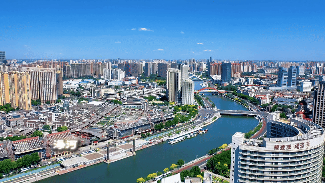 這是2025年6月21日拍攝的天津中心城區(qū)海河夜色(無人機(jī)照片)。新華社記者 孫凡越 攝