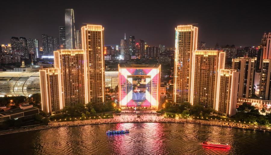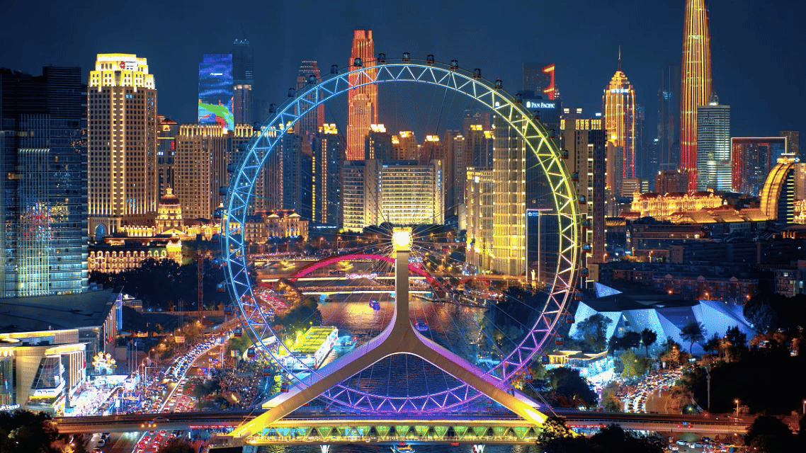 這是2025年8月1日拍攝的天津海河夜景(無人機(jī)照片)。新華社記者 孫凡越 攝