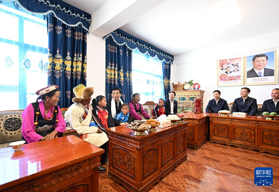 8月22日,受習(xí)近平總書記囑托,帶著黨中央的親切關(guān)懷和全國人民的深情祝福,中央代表團(tuán)部分成員在日喀則看望慰問各族干部群眾。這是王滬寧和中央代表團(tuán)部分成員來到白朗縣嘎東鎮(zhèn)阿亞村考察鄉(xiāng)村振興工作,了解群眾生產(chǎn)生活情況。新華社記者 李響 攝