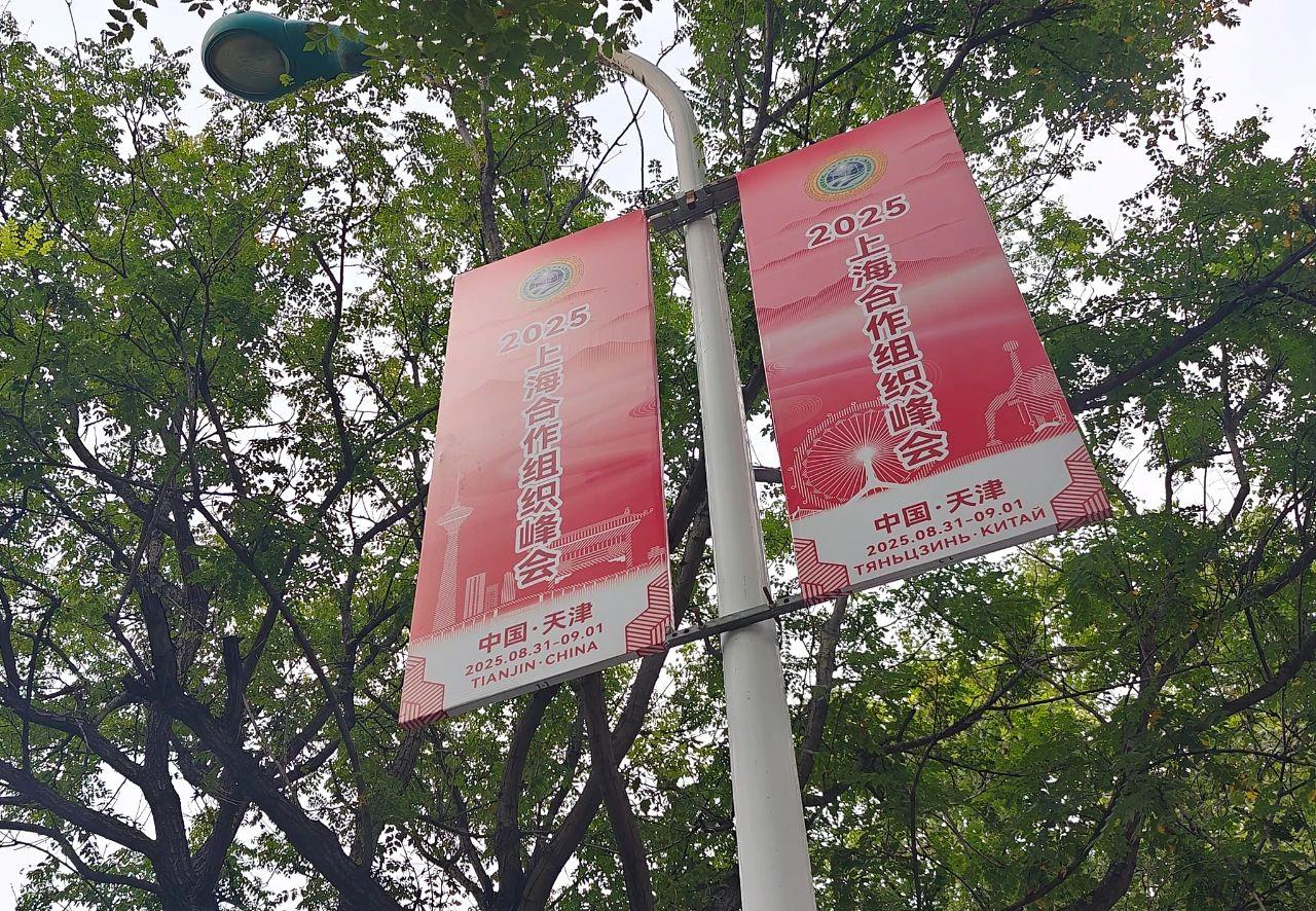 走進(jìn)天津,會(huì)發(fā)現(xiàn)體現(xiàn)上合元素的旗幟已經(jīng)掛滿天津主干道路兩側(cè),賞心悅目的花籃也點(diǎn)綴在大街小巷。