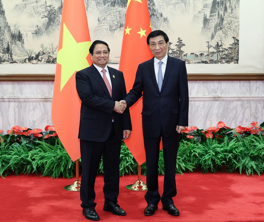 9月1日,全國政協主席王滬寧在北京會見來華出席2025年上海合作組織峰會的越南總理范明政。新華社記者 王曄 攝