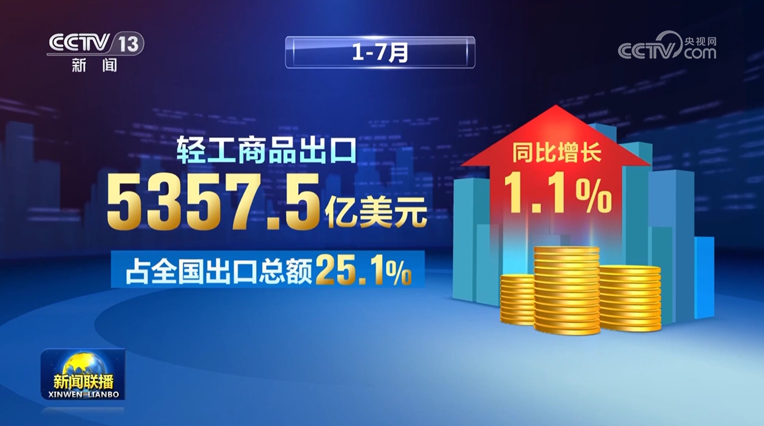 出口方面,繼續(xù)保持韌性。1—7月,輕工商品出口5357.5億美元,占全國(guó)出口總額25.1%,同比增長(zhǎng)1.1%;21個(gè)大類(lèi)行業(yè)中11個(gè)保持增長(zhǎng)。