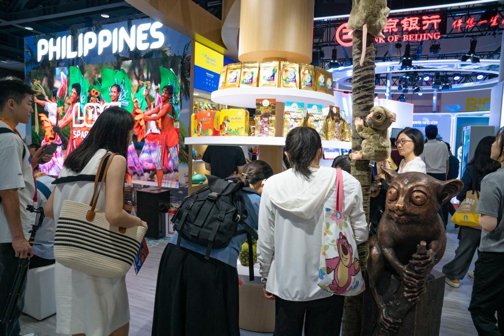 9月10日,在服貿(mào)會主題展菲律賓館,參觀者在了解菲律賓商品。新華社記者 丁赫 攝