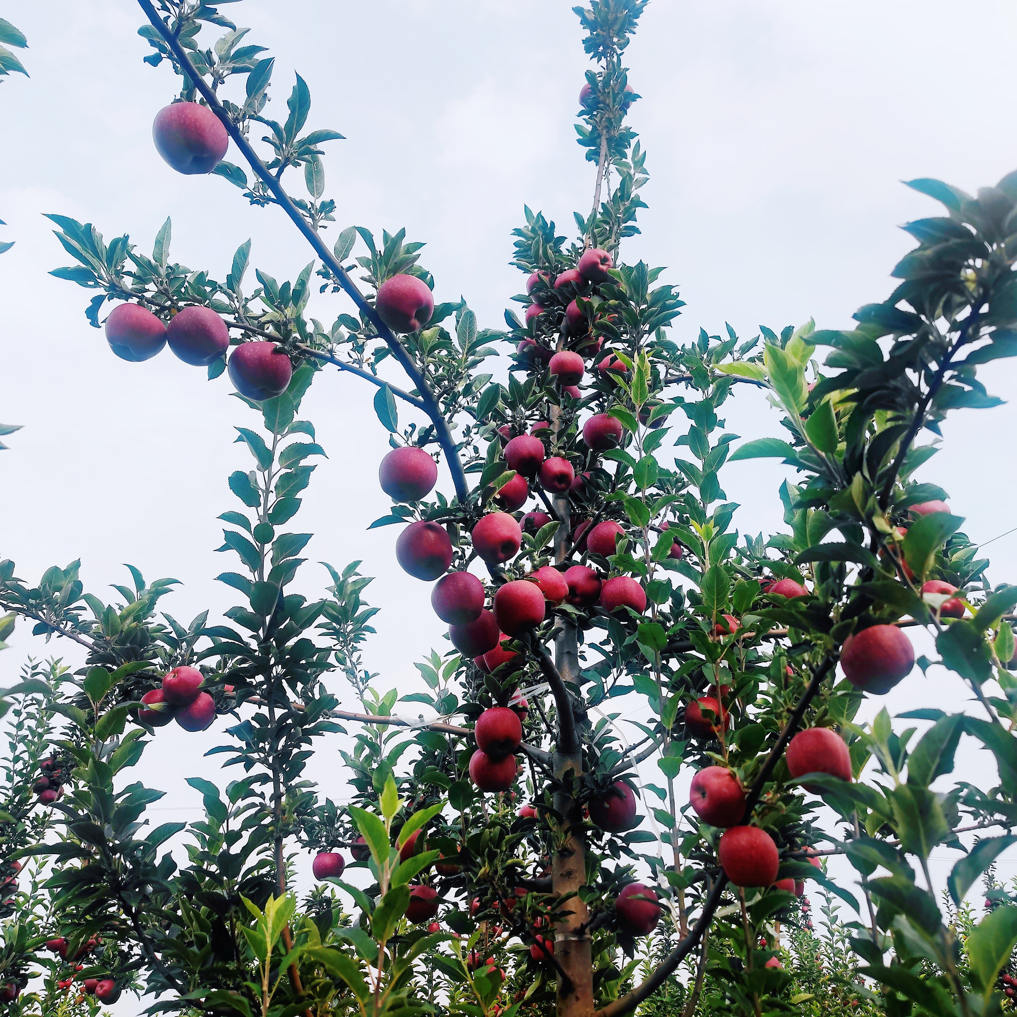 金秋時節(jié)的平原村蘋果產(chǎn)業(yè)園,550畝果樹長勢喜人。放眼望去,漫山遍野的蘋果樹上掛滿了紅彤彤的果實,像一個個紅燈籠,把枝頭壓得沉甸甸的。2017年至2018年栽種的323畝瓦里短枝蘋果與200多畝富士蘋果,今年全面進(jìn)入盛果期。得益于今年自然災(zāi)害少、管理精細(xì)化,加之平原村光照充足、土壤肥沃的自然優(yōu)勢,這里的蘋果外形圓潤均勻、果面光潔細(xì)膩,咬下一口滿是香脆甜爽,早已成為消費者青睞的“心頭好”。
