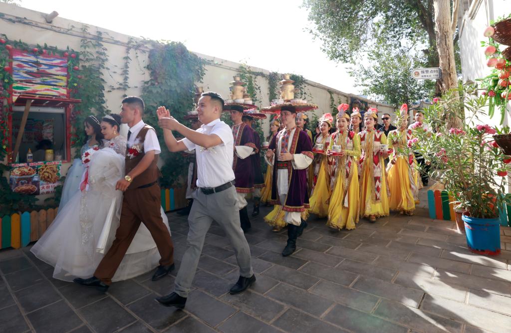 夜幕降臨,游客的歡聲笑語漸漸停歇,第二天太陽升起時,薩瑪瓦爾舞依舊翩躚。這支傳承千年的樂舞,不僅成為古城文旅融合的一道生動風景,也是當?shù)乇Wo傳承非物質(zhì)文化遺產(chǎn)、推動旅游惠民的縮影。