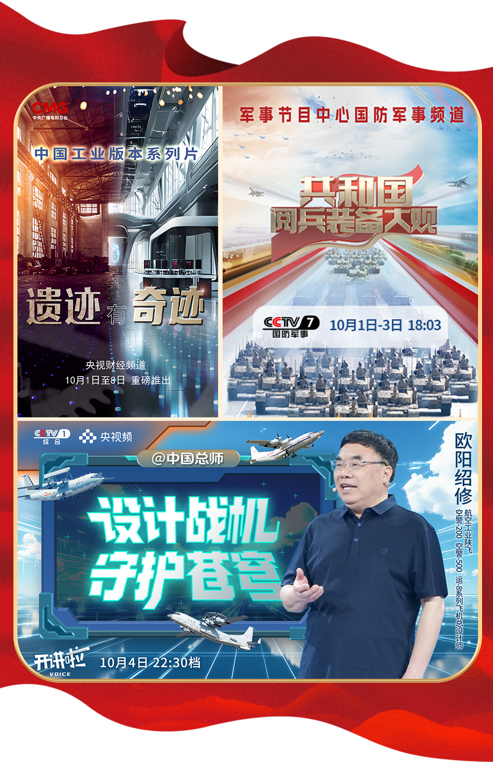 紀錄片《遺跡有奇跡》,深入探訪八個不同行業(yè)的工業(yè)遺址,展現(xiàn)中國工業(yè)發(fā)展的輝煌歷程。九三閱兵現(xiàn)場,新型察打一體無人機、空警-500預(yù)警機等硬核裝備令人振奮,《開講啦》“@中國總師”解讀中國軍工硬核實力,系列節(jié)目《共和國閱兵裝備大觀》帶你在鋼鐵洪流的轟鳴聲中見證軍工裝備的迭代升級,展示新時代中國科技創(chuàng)新帶來的大國力量!向前進,向前進,我們有信心、有底氣!