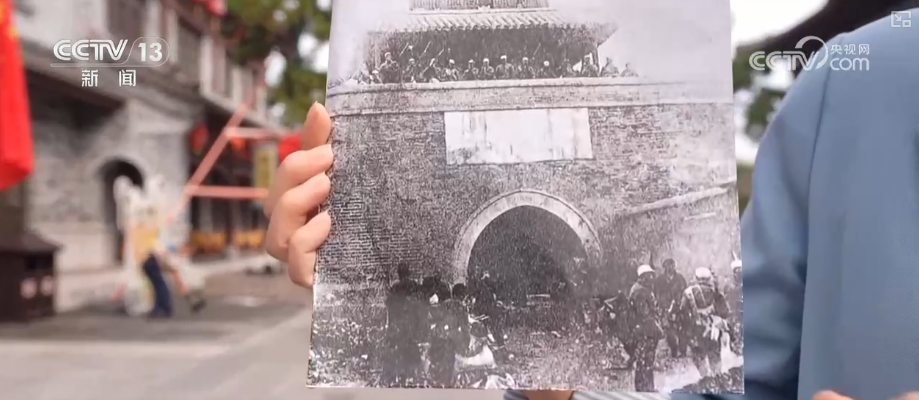 莒國古城里到處都是喜氣洋洋、熱鬧非凡。這張?zhí)厥獾恼掌【暗鼐褪窃谶@里,這是當年莒城解放戰(zhàn)后的情形,戰(zhàn)士們登上了城樓,定格下了這份來之不易的勝利。
