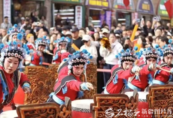 10月1日12時(shí),新疆國際大巴扎步行街化身為一片沸騰的海洋,來自陜西神木的非物質(zhì)文化遺產(chǎn)代表性項(xiàng)目——“忠勇楊家鼓”在此激情上演,為八方來客獻(xiàn)上一場(chǎng)氣勢(shì)磅礴的傳統(tǒng)民俗盛宴。