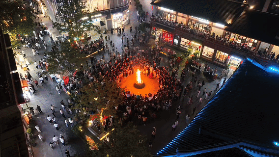中秋節(jié)來臨之際,位于安徽省阜陽市潁州區(qū)的雙清灣水街熱鬧非凡,一場(chǎng)延續(xù)近800年的中秋火把祈福習(xí)俗煥新登場(chǎng),連串的火把依次亮起,如火龍蜿蜒穿行,吸引近5000名市民打卡。