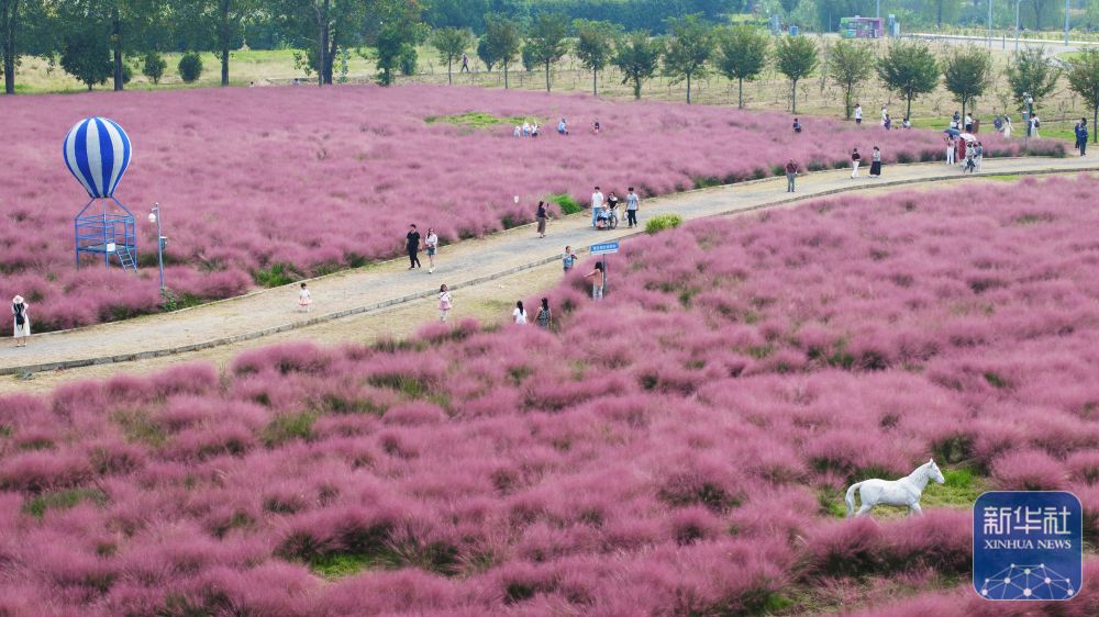 ↑ 10月5日,人們?cè)谀暇┌素灾弈吧匣ǘ捎瓮妫o(wú)人機(jī)照片)。新華社發(fā)(蘇陽(yáng)攝)