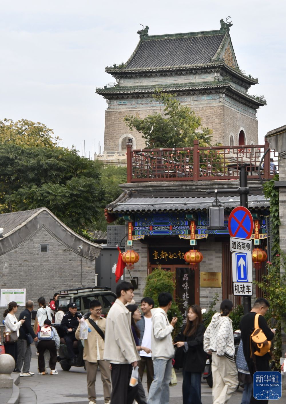 ↑ 10月6日,游客游覽北京鐘鼓樓附近的小街巷。新華社記者 李欣 攝