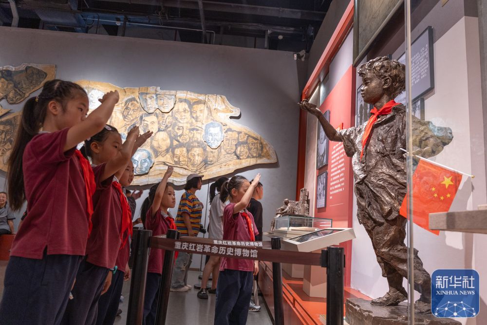 ↑ 10月6日,來(lái)自渝北巴蜀小學(xué)二年級(jí)九班的同學(xué)們?cè)谥貞c歌樂(lè)山革命紀(jì)念館參觀。新華社記者 陳誠(chéng) 攝