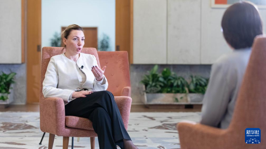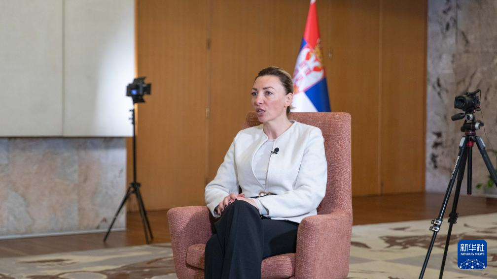 10月2日,塞爾維亞負(fù)責(zé)性別平等、防止針對婦女的暴力以及婦女經(jīng)濟(jì)和政治賦權(quán)事務(wù)的不管部長塔季揚娜·馬楚拉在塞爾維亞首都貝爾格萊德接受新華社記者專訪。新華社發(fā)(王韡攝)