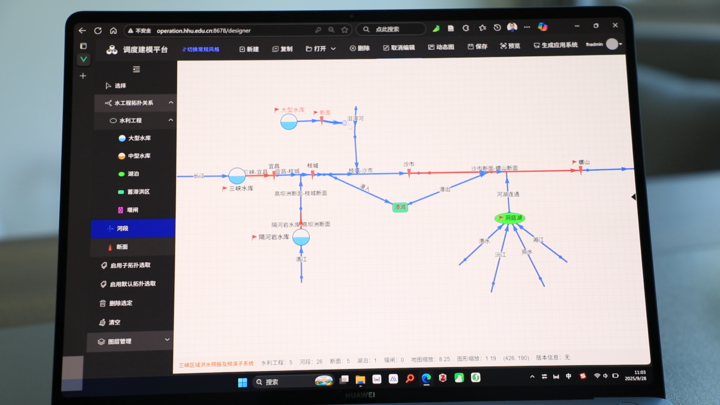 在河海大學(xué)水工程調(diào)度團隊鐘平安教授的帶領(lǐng)下,朱非林參與了面向三峽工程這一國之重器的重大科研攻關(guān)。團隊主要在"快"和"準"兩個字上下功夫。過去,為一個流域搭建防汛調(diào)度模型和系統(tǒng),需要工程師花費幾天甚至幾個月手動創(chuàng)建,如同手工編織一張巨大的網(wǎng)。朱非林團隊開發(fā)了一套智能在線建模系統(tǒng),像搭"數(shù)字樂高"一樣,通過簡單的鼠標拖拉拽操作,就能在幾分鐘內(nèi)建立起全國任意流域或區(qū)域的調(diào)度系統(tǒng)和模型,極大提升了防汛決策的響應(yīng)速度,為洪水調(diào)度贏得了寶貴的黃金時間。