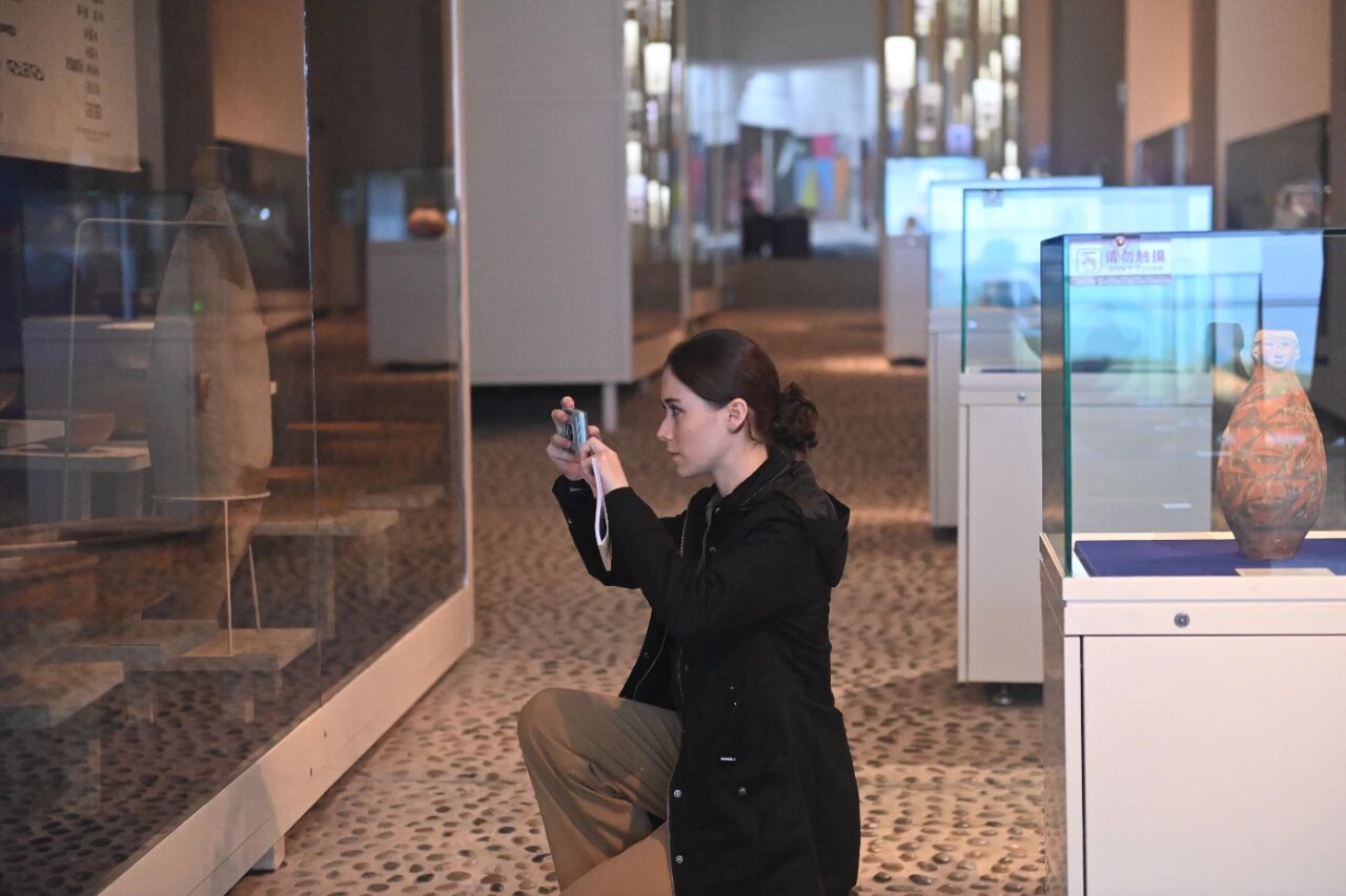 2024年10月22日,2024青年漢學(xué)家研修計(jì)劃甘肅班團(tuán)隊(duì)22個(gè)國(guó)家的青年漢學(xué)家,走進(jìn)甘肅省天水市秦安縣大地灣遺址參觀并進(jìn)行專題研修。中新社記者 李亞龍 攝