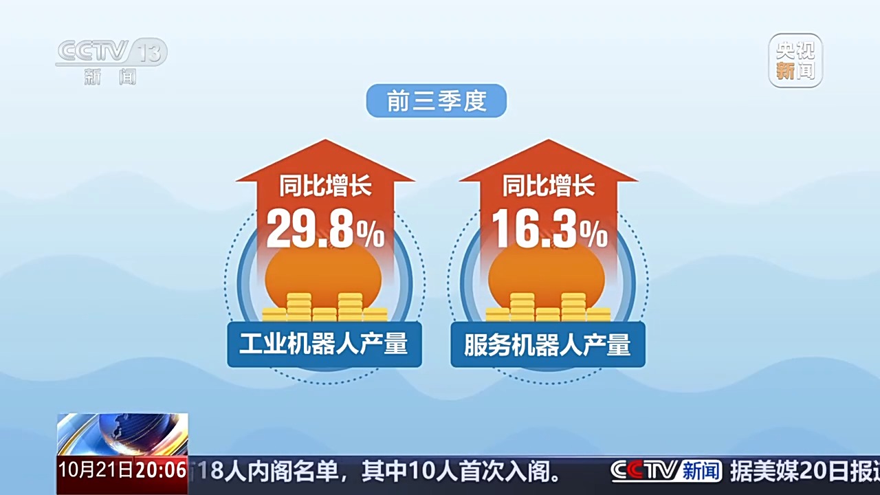 第三季度,我國規(guī)模以上高技術(shù)制造業(yè)增加值同比增速明顯快于全部工業(yè);信息傳輸、軟件和信息技術(shù)服務(wù)業(yè)增加值增長11.7%,比上年同期加快1.7個百分點。前三季度,規(guī)模以上高技術(shù)制造業(yè)增加值同比增長9.6%;工業(yè)機器人、服務(wù)機器人等產(chǎn)品產(chǎn)量分別增長29.8%、16.3%。