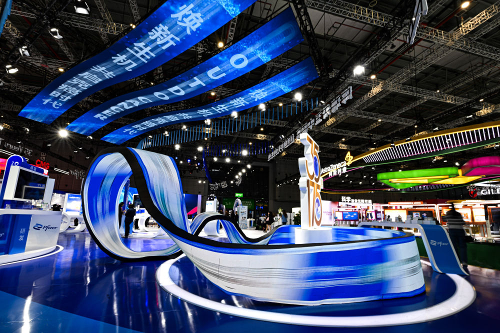 這是2024年11月8日在第七屆進(jìn)博會(huì)醫(yī)療器械及醫(yī)藥保健展區(qū)拍攝的輝瑞展臺。新華社記者 辛悅衛(wèi) 攝