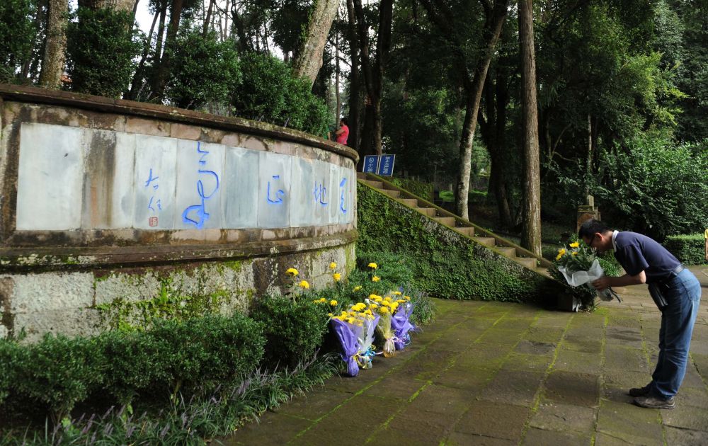 2012年8月15日,云南騰沖各地群眾前往“國殤墓園”和“騰沖滇西抗戰(zhàn)博物館”等愛國主義教育基地,祭奠抗戰(zhàn)先烈。這是一位市民在“國殤墓園”緬懷英烈。
