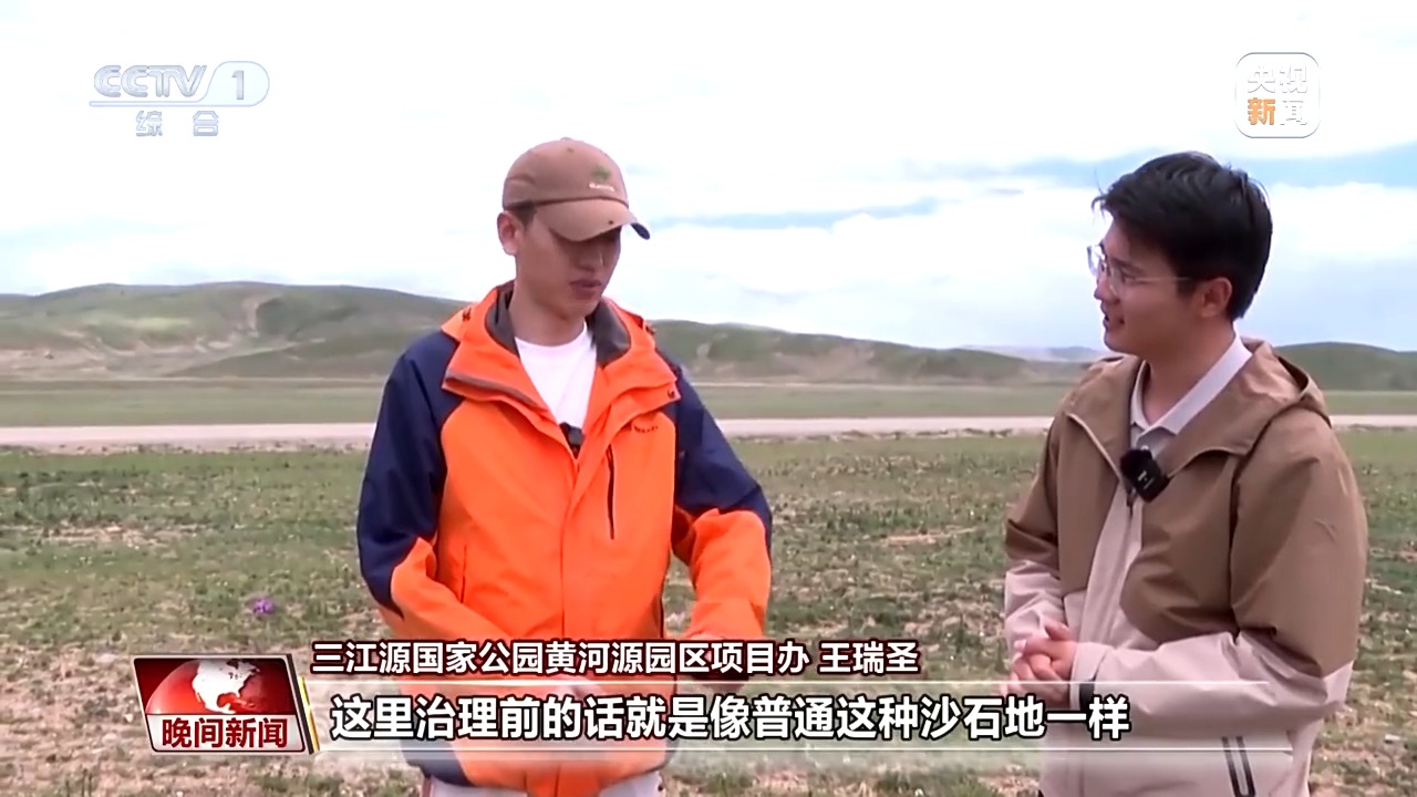 在海拔4300米的三江源黃河源園區(qū),茂密的草場(chǎng)一望無際,但是這片綠其實(shí)來之不易。這片區(qū)域,黑土灘的情況一度非常嚴(yán)重,黑土灘每擴(kuò)張一分,草場(chǎng)就退縮一分。