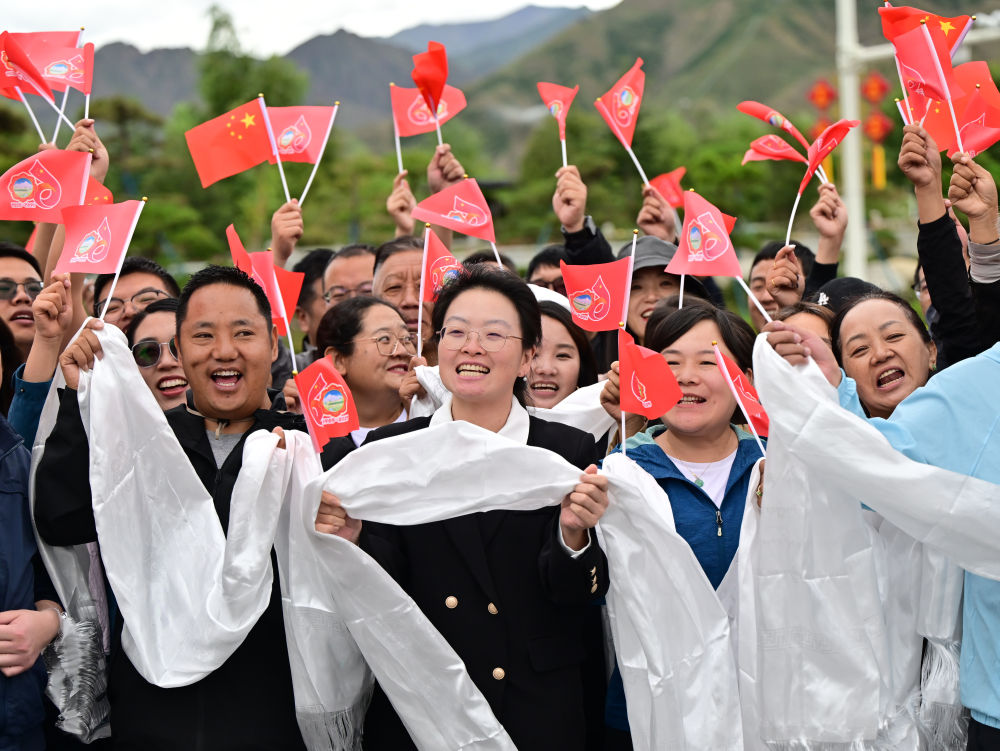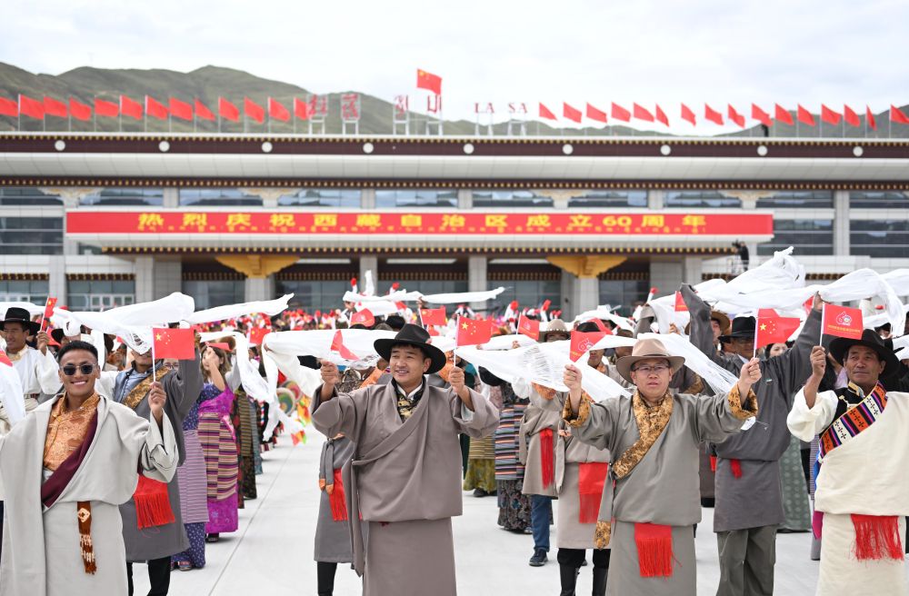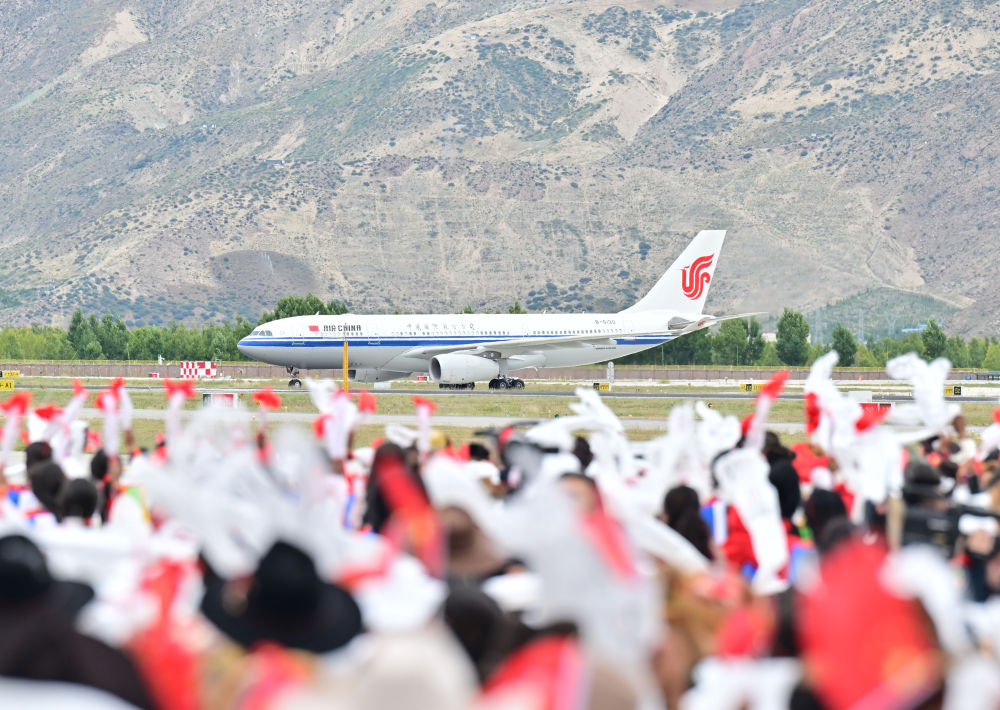 中共中央總書記、國家主席、中央軍委主席習(xí)近平率中央代表團(tuán)20日中午乘專機(jī)抵達(dá)拉薩,出席西藏自治區(qū)成立60周年慶?;顒?。習(xí)近平等在機(jī)場和拉薩市區(qū)受到西藏各族群眾的熱烈歡迎。
