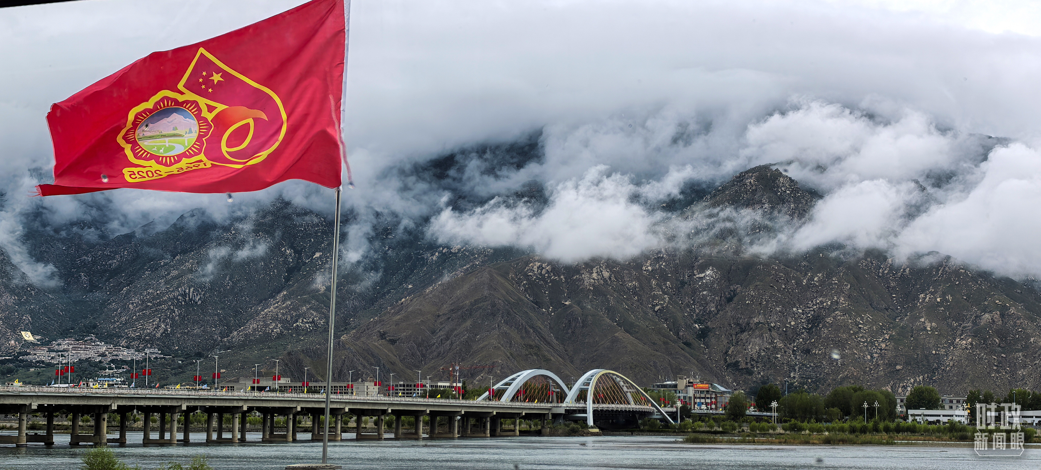 西藏自治區(qū)成立60周年標(biāo)識。(總臺央視記者韓銳拍攝)