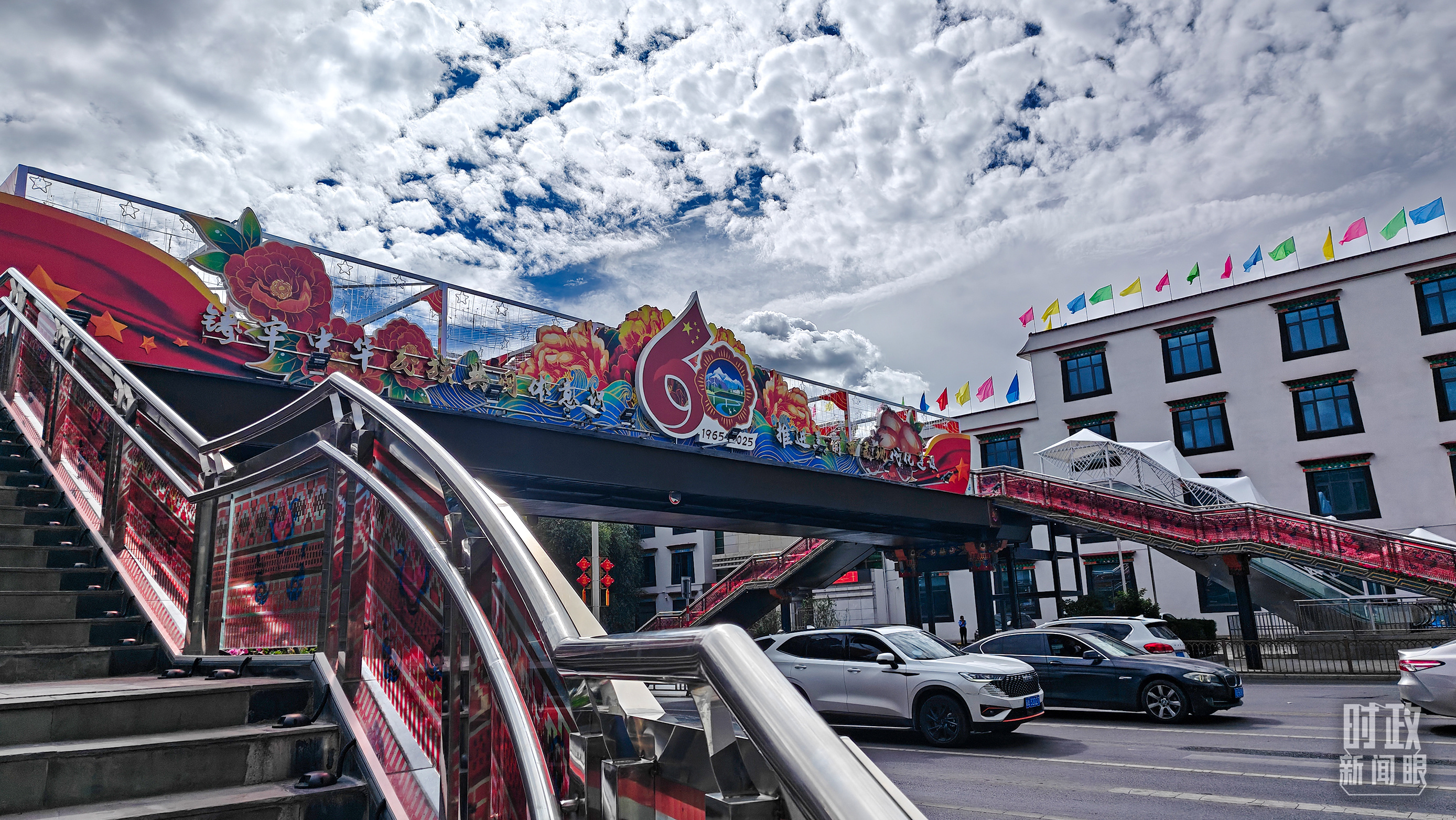 西藏自治區(qū)成立60周年標(biāo)語牌。(總臺央視記者張宇拍攝)