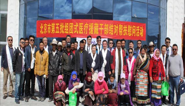 北京市第五批“組團(tuán)式”援藏醫(yī)療人才開(kāi)展與當(dāng)?shù)厝罕娊Y(jié)對(duì)幫扶活動(dòng)助力脫貧攻堅(jiān)。圖為援藏醫(yī)療隊(duì)員與當(dāng)?shù)亟Y(jié)對(duì)群眾合影。