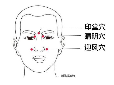 從迎香穴推到內(nèi)眼角的睛明穴,對迎風(fēng)流淚、無風(fēng)也流淚的淚道不暢,效果十分顯著;并對早期的真假性近視、老花眼、玻璃體混濁、白內(nèi)障、青光眼等導(dǎo)致的視力模糊效果也不錯。繼續(xù)推到印堂穴,這樣做會防治由眼疾、鼻疾引起的前頭痛、額竇炎。