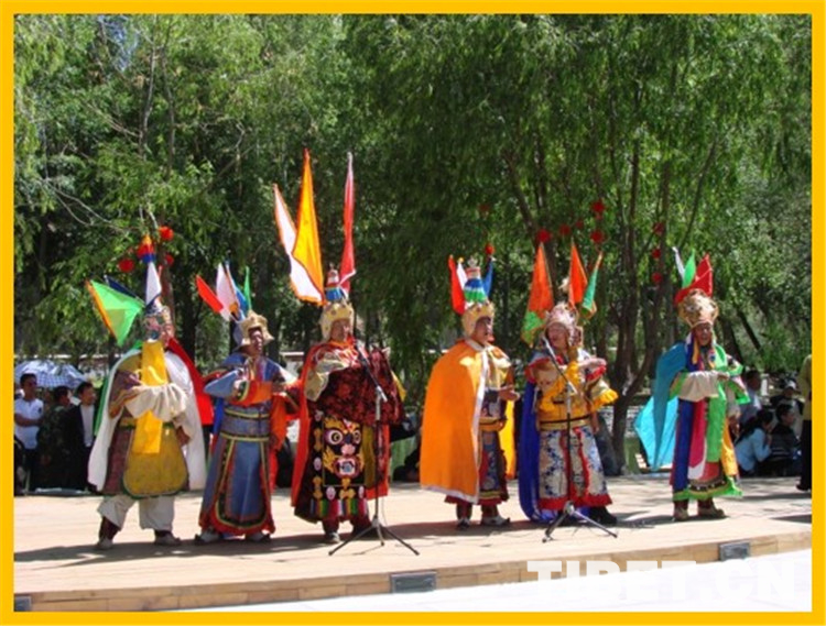 圖為山南雅隆扎西雪巴藏戲。藏戲是藏族傳統(tǒng)戲劇的杰出代表,有西藏白面具藏戲、藍(lán)面具藏戲,青海黃南藏戲,甘肅甘南藏戲,四川嘉絨藏戲、康巴藏戲,同時西藏還有門巴戲等眾多藏戲流派。目前,已有12個傳統(tǒng)戲劇類非物質(zhì)文化遺產(chǎn)項目列入國家和西藏自治區(qū)級名錄。