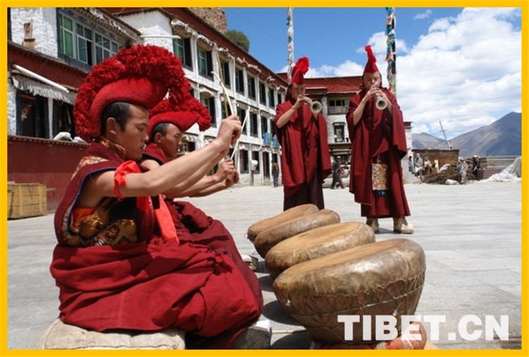 圖為直孔噶舉派音樂(佛教音樂)。藏族傳統(tǒng)音樂特色鮮明,品種多樣,包括民間音樂、宗教音樂、宮廷音樂三大類。目前,18個傳統(tǒng)音樂類非物質(zhì)文化遺產(chǎn)項目被列入國家和西藏自治區(qū)級名錄。