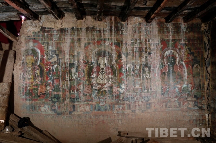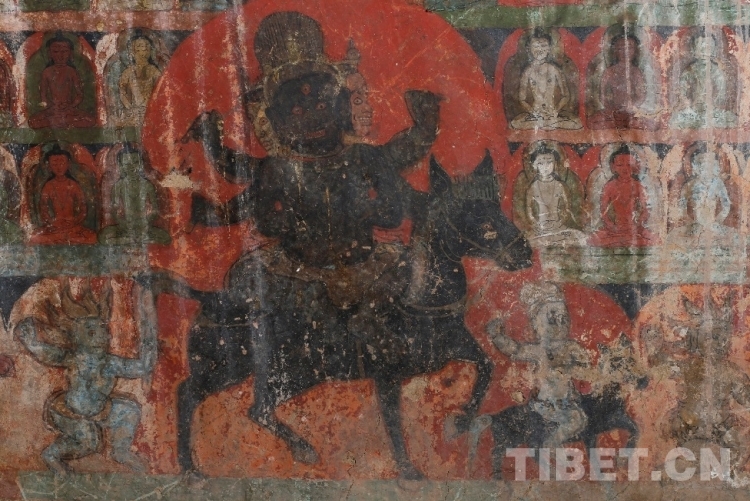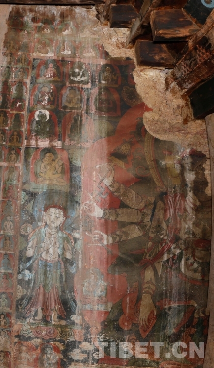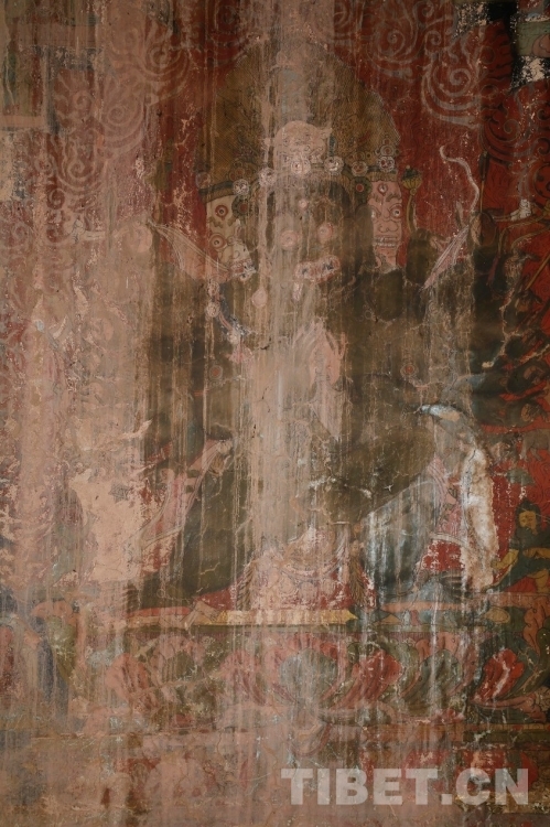 中國(guó)西藏網(wǎng)訊 近日,《中國(guó)唐卡文化檔案?苯教卷》項(xiàng)目組成員、《中國(guó)西藏》雜志通訊員范久輝在西藏自治區(qū)昌都市進(jìn)行田野調(diào)查時(shí),在洛隆縣臘久鄉(xiāng)的向?qū)睦嗜是嗟膸ьI(lǐng)下,于八宿縣夏里鄉(xiāng)左西村附近的薪日寺(??????????????)內(nèi)發(fā)現(xiàn)了明代苯教壁畫。